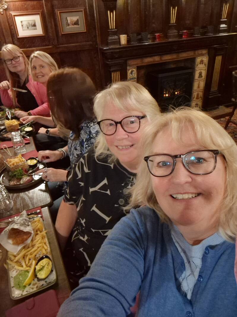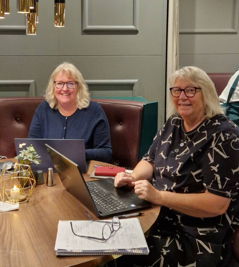 Vi är ett gäng skrivande personer (10 st) som träffas, utan några krav, två gånger per år i Norrköping. Vi delar erfarenheter, skriver, pratar och äter. Vi bor på samma hotell varje gång och äter på Bishop arms. Mia Möller och jag sitter i foajen och skriver. Fyra av oss har gett ut böcker och vi fick ett bokbord i foajen där vi signerade våra böcker till de som ville köpa.